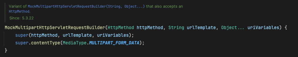 그러면 왜 RestDocumentationRequestBuilders의 multipart() 메서드는 애초에 MockMvcRequestBuilders의 multipart() 호출할 때, HttpMethod를 전달받지 않는 메서드를 선택했을까?